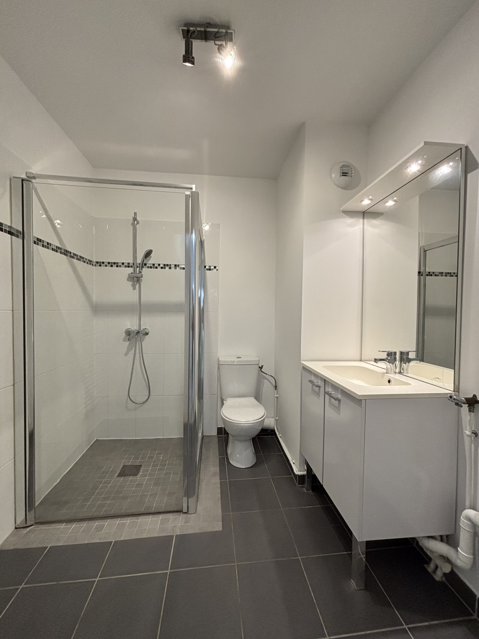 Il se compose d’une entrée avec placard , d’une salle d’eau avec WC , de deux chambres, d’un séjour avec une cuisine semi-équipée et ouverte.