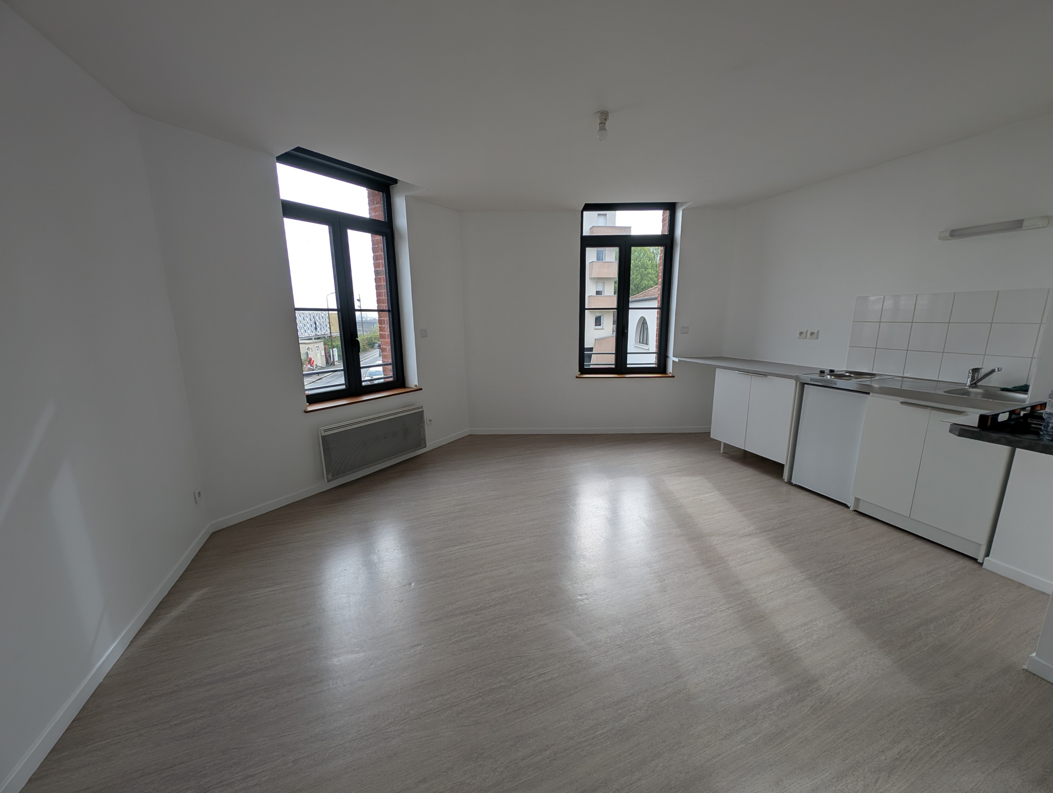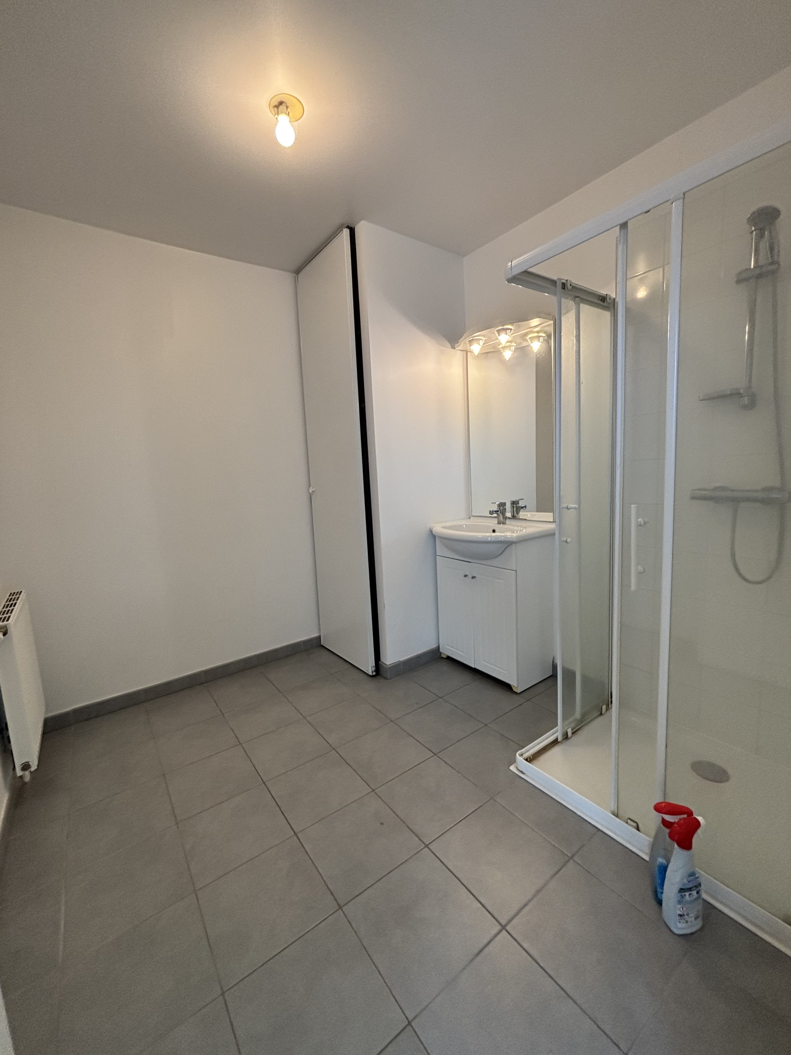L’appartement se compose d’une entrée avec placard de rangement, d’une lumineuse pièce de vie avec kitchenette, de WC séparés, ainsi que d’une chambre avec salle d’eau attenante.